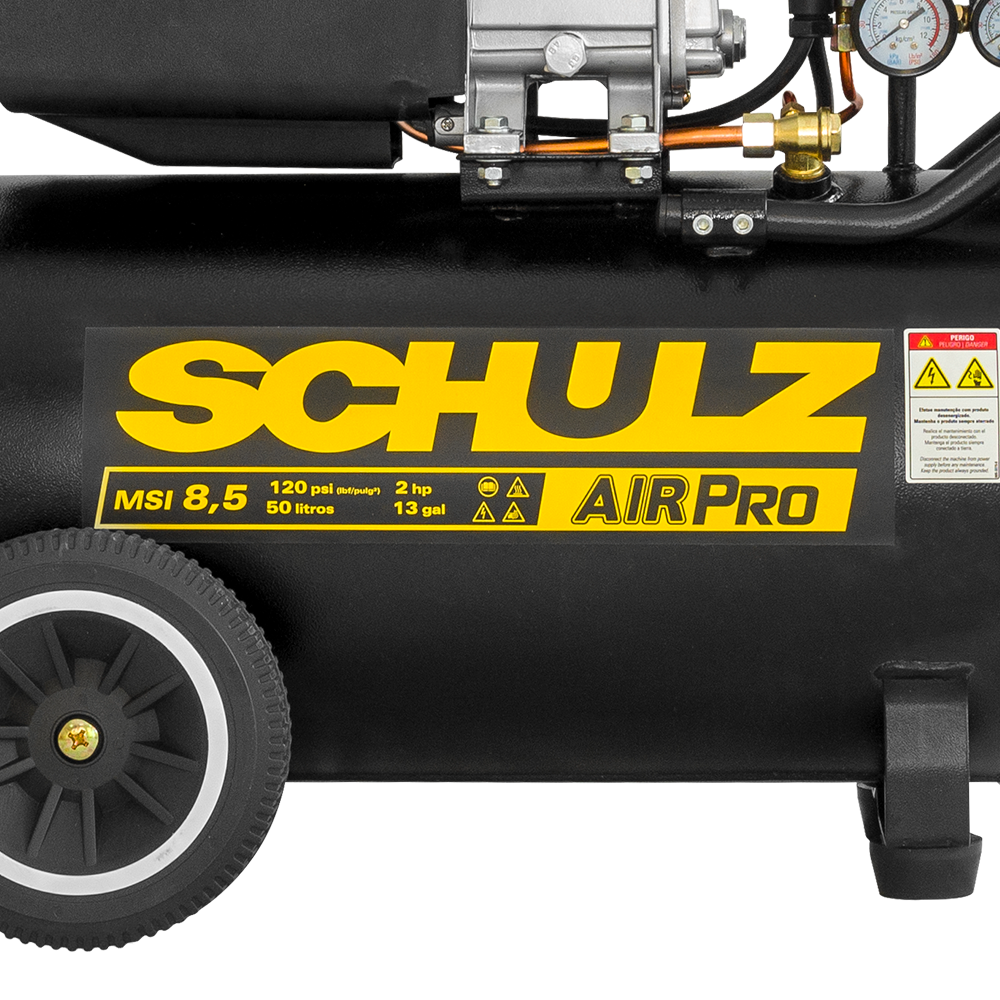 El Motocompresor Air Pro MSI 8,5/50 es versátil y seguro. Posee caudal de 8,5 pcm y presión de 120 lbf/pulg², siendo ideal para una serie de aplicaciones, como servicios de pintura en general, calibración de ruedas e inflado de objetos. Quien busca un compresor portátil y profesional, encuentra en Air Pro la mejor opción.