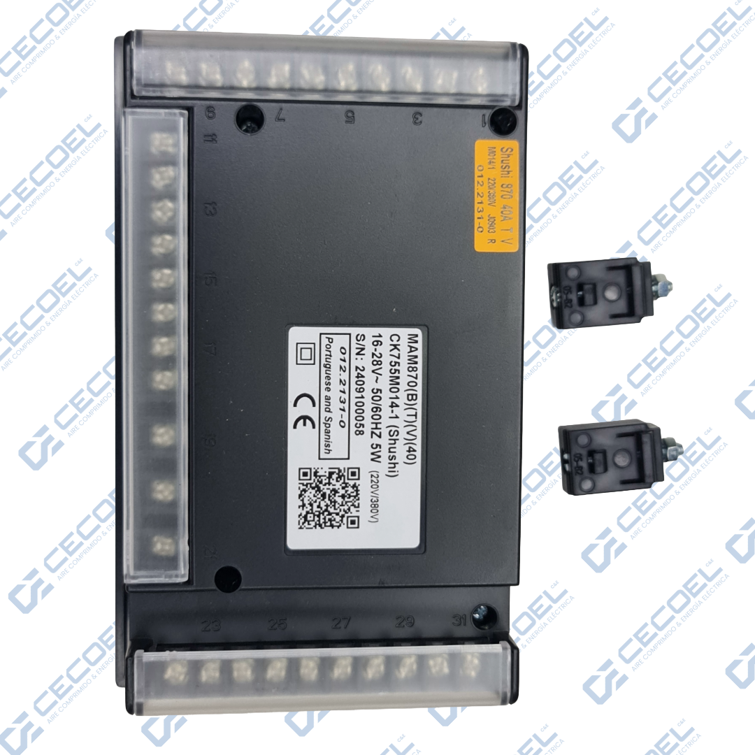 Finalmente, este controlador es 100% compatible con equipos estacionarios de la línea de tornillos de Schulz, siendo la actualización o el repuesto definitivo para modernizar y asegurar tu cuarto de máquinas.